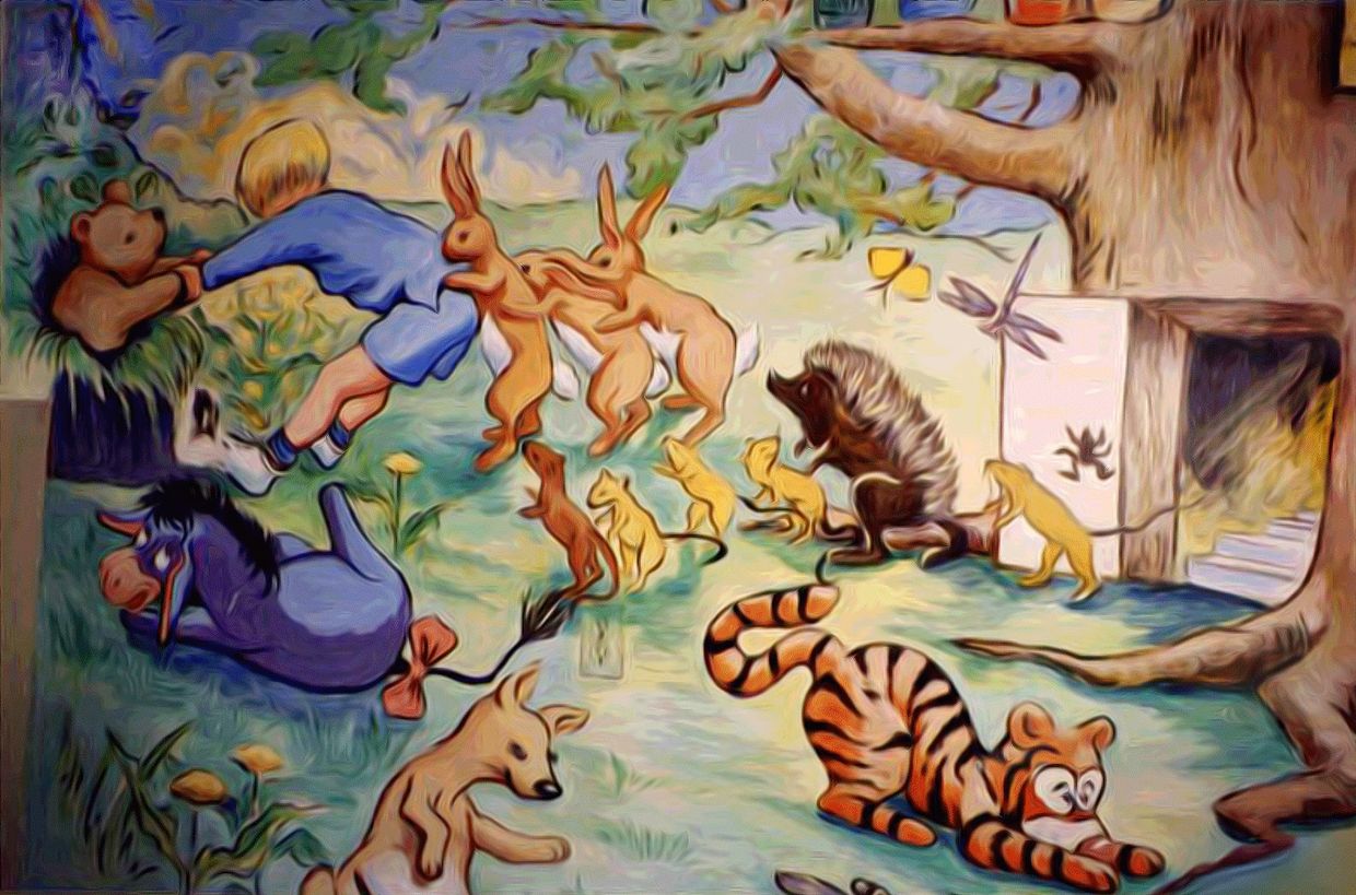 A client wanted a meaningful, one-of-a-kind mural for her babies nursery. Client loved Winnie the Poo...soo...